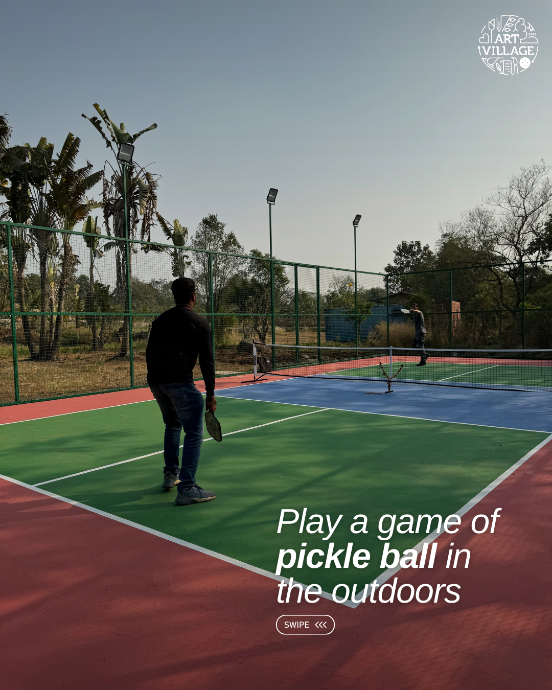 Art village Karjat is a heaven for hosting Retreats an hour and a half away from Mumbai city. An artist collaborative space spread over 7 acres of farm land that houses organic farming, a meditation center, a swimming pool, horse stables, pickle ball court a cafe and a recreational space with a library and artist studios in pottery, print making and wood working.