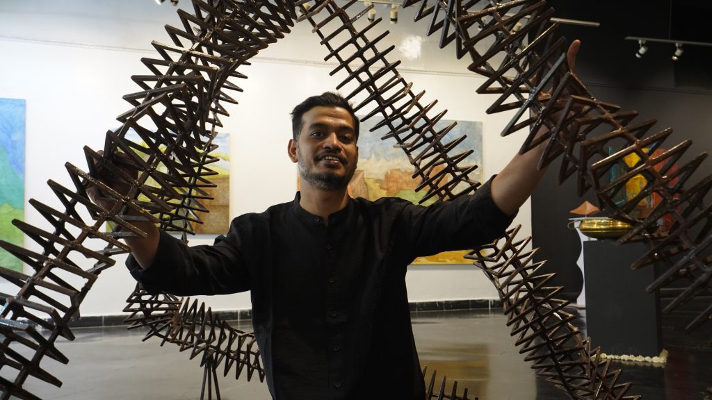 Alongside his individual practice, Abhishek has facilitated collaborative art programs and workshops focused on material awareness and sustainable making. His studio, Kalaprabha, also functions as a community-oriented space for experimentation and dialogue. Abhishek’s current work delves into energy-responsive sculptures—forms that interact subtly with the presence of viewers or environmental vibrations. He is particularly interested in mapping invisible forces through physical structures.
